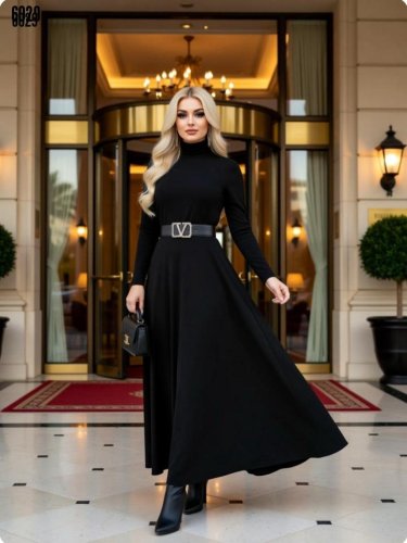 • Kadın uzun kollu balıkçı yaka uzun akrilik elbise