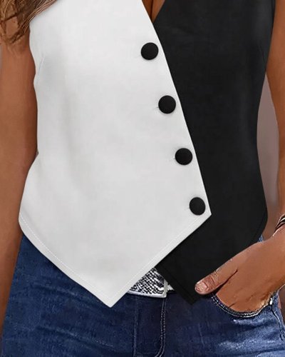• Kadın sıfır kol v yakalı düğmeli blok renkli atlas yelek