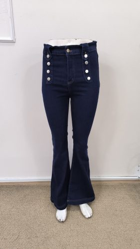 • Kadın yüksek bel önden düğme detaylı parçaya doğru geniş kot pantolon