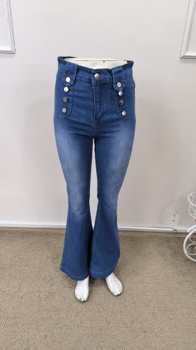 • Kadın yüksek bel önden düğme detaylı parçaya doğru geniş kot pantolon