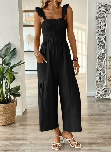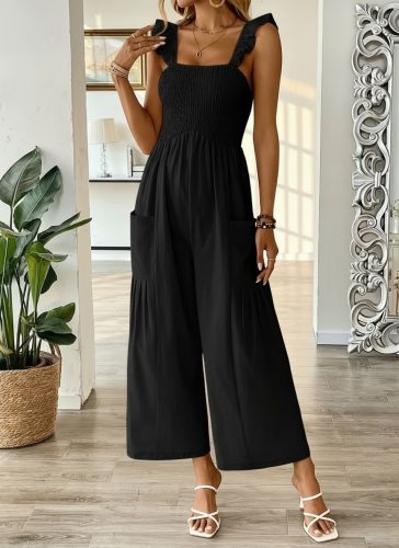 • Kadın askılı gipe detaylı cepli uzun tulum