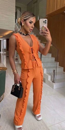 • İthal bürümcük kumaş fırfır detaylı ikili takım