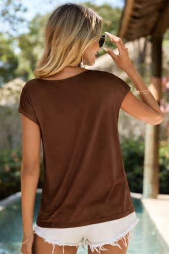 Kadın kısa kollu degaje yakalı viskon bluz
