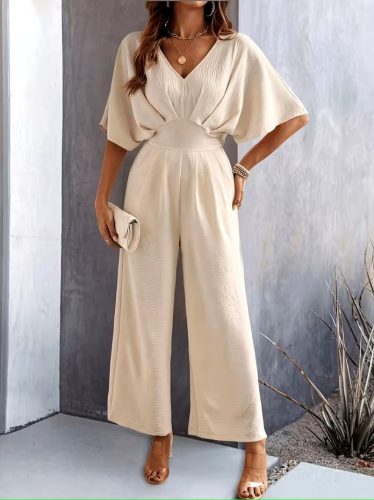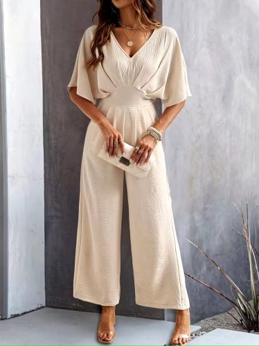 • Kadın kısa kollu kruvaze yakalı önden büzgülü uzun aerobin tulum