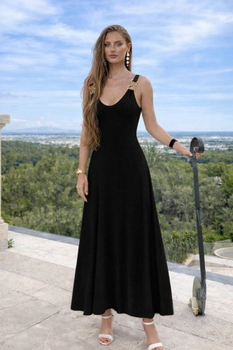 Toka detaylı pamuk dokuma kumaş uzun elbise